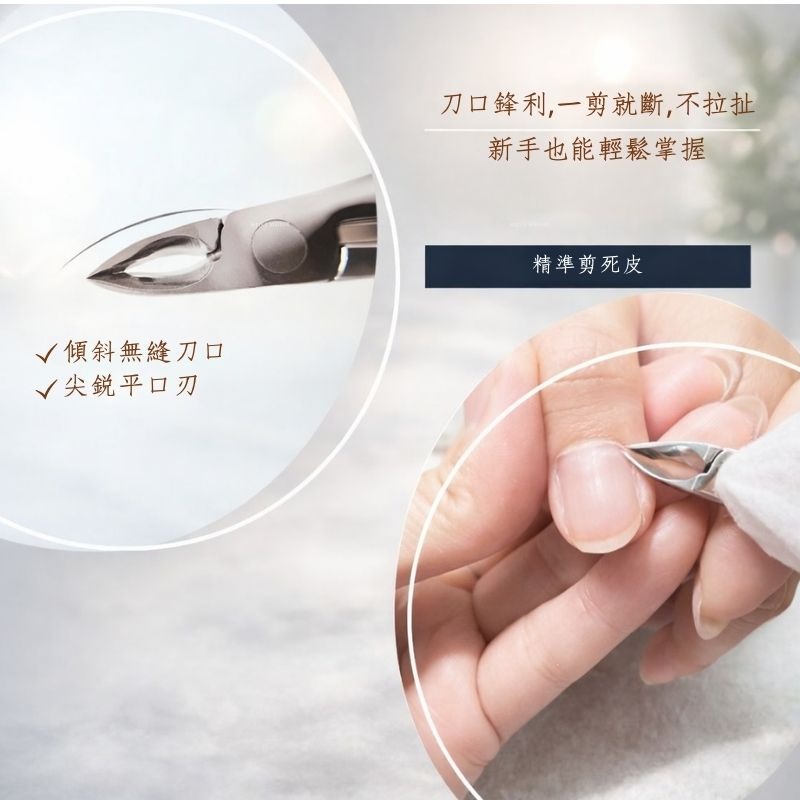 ・斜口薄刃設計:刀口貼合度佳,修剪甘皮、死皮、硬皮更俐落
