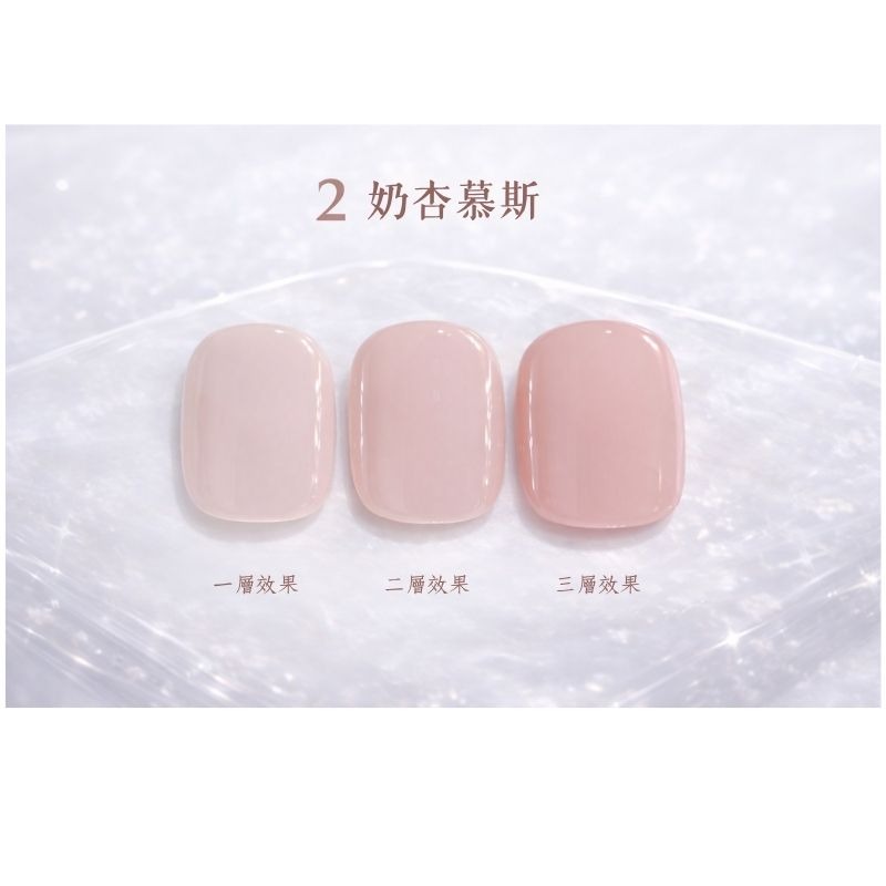 主打清透光感與柔嫩顯白效果,單擦自然、疊擦飽和,輕鬆打造日常清透感、韓系奶凍感、果汁系甜感美甲。