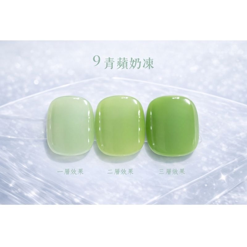 本系列共 9 色可選,從蜜桃奶霜、奶杏慕斯、紫藤奶凍,到冰川蘇打、海鹽蘇打、薄荷奶凍、檸檬奶凍、青蘋奶凍,