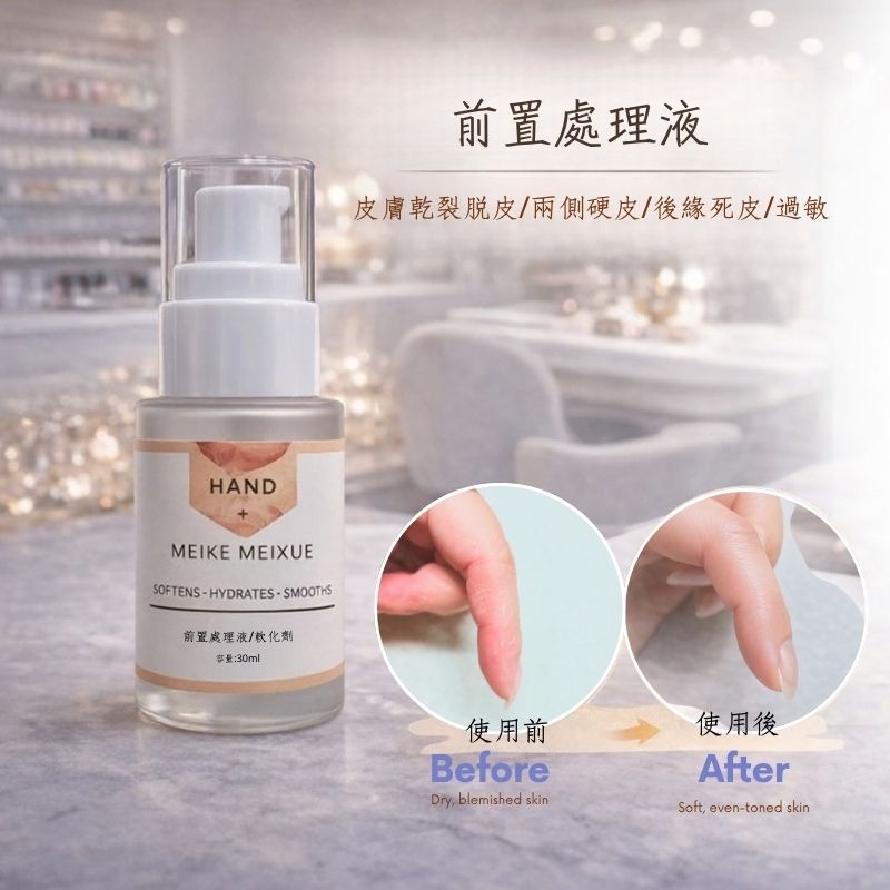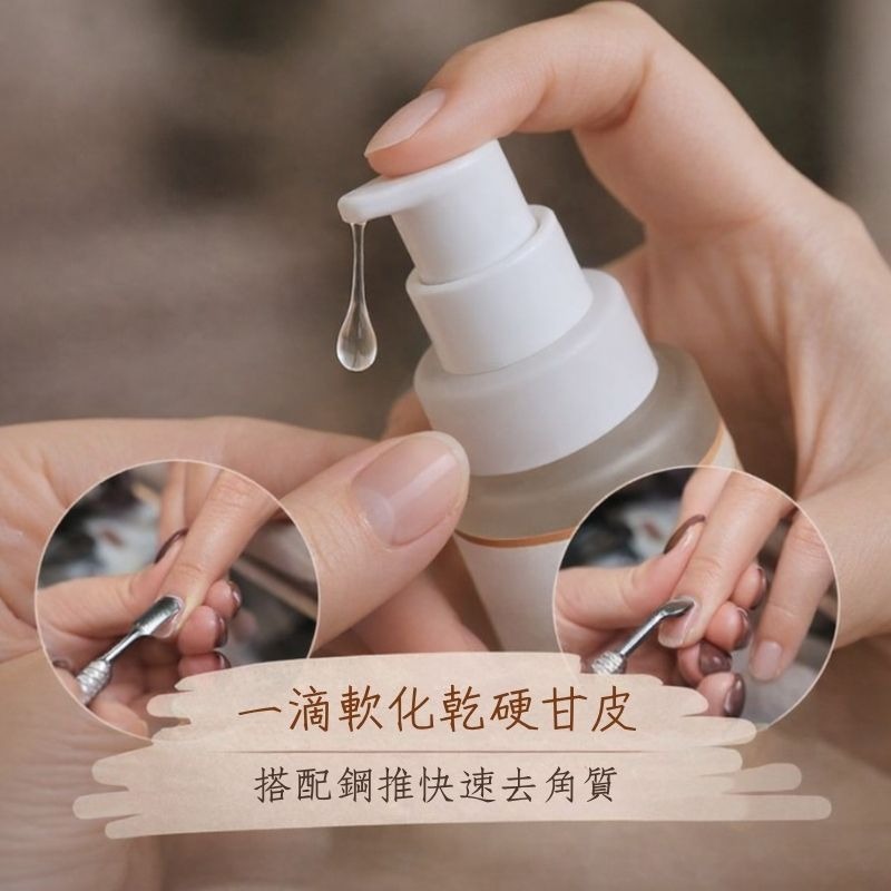 修甲前置保養使用,幫助軟化乾硬死皮、甘皮與指緣角質,讓後續修剪更順手、整理更俐落。適合居家修甲、美甲前置保養與專業美甲師操作使用。
